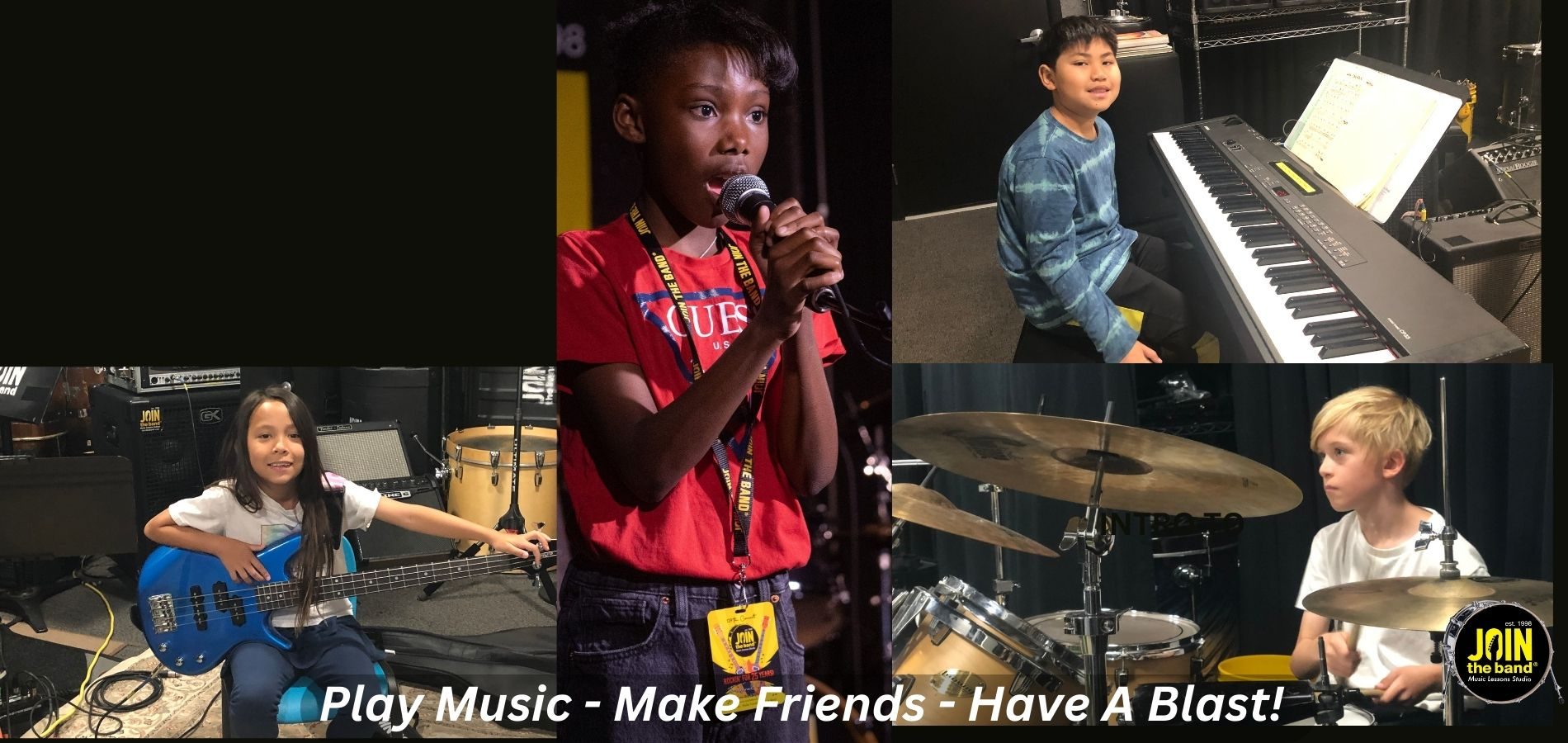 Our “Join The Band ” INTRO TO MUSIC program is a fun way for your child to try guitar, piano, singing, and drums without committing to ongoing lessons right away.